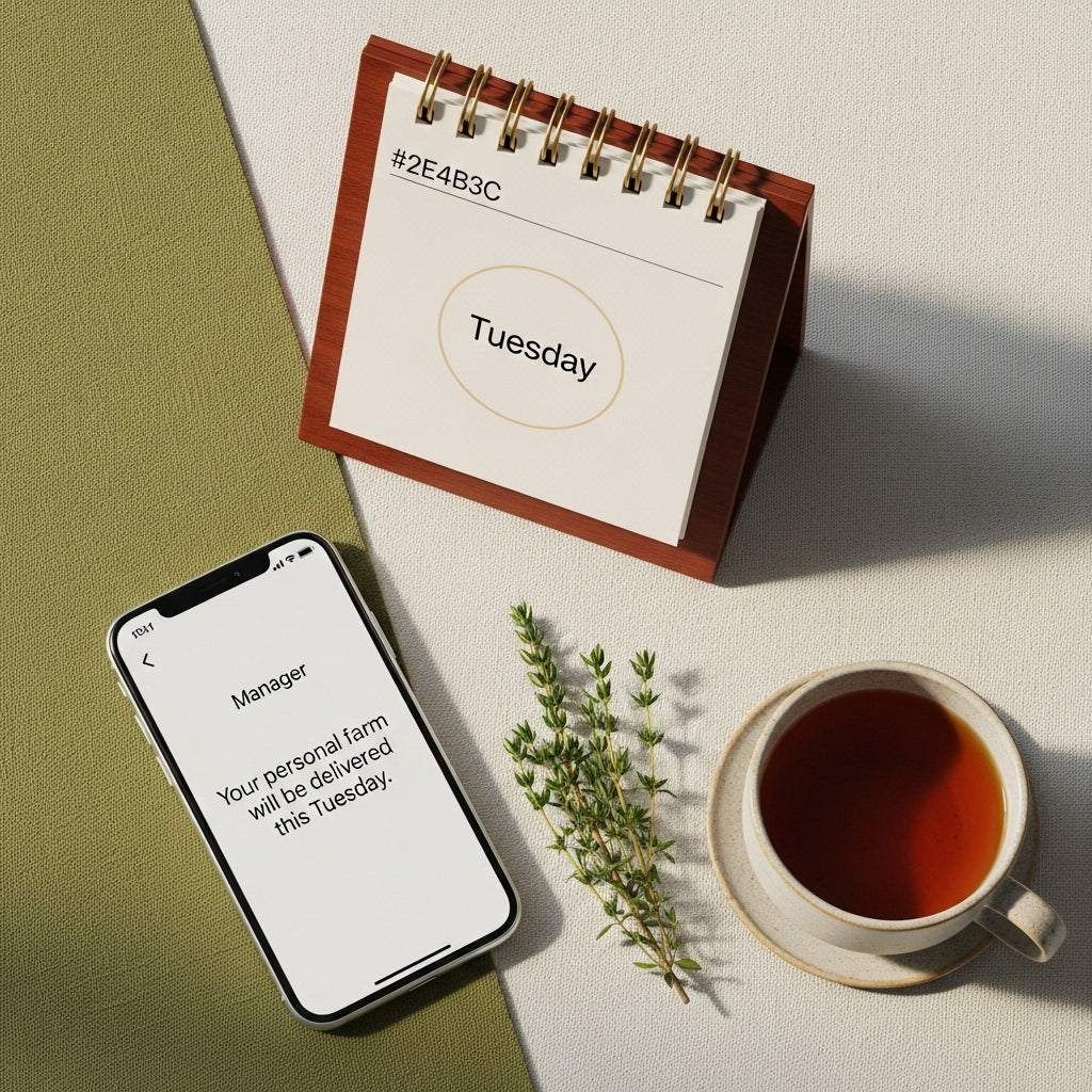Place your order and pay. Our manager will reach out to confirm the next delivery date for your area. UPS nationwide ships every Tuesday; hand-delivery runs across East Coast & nearby.